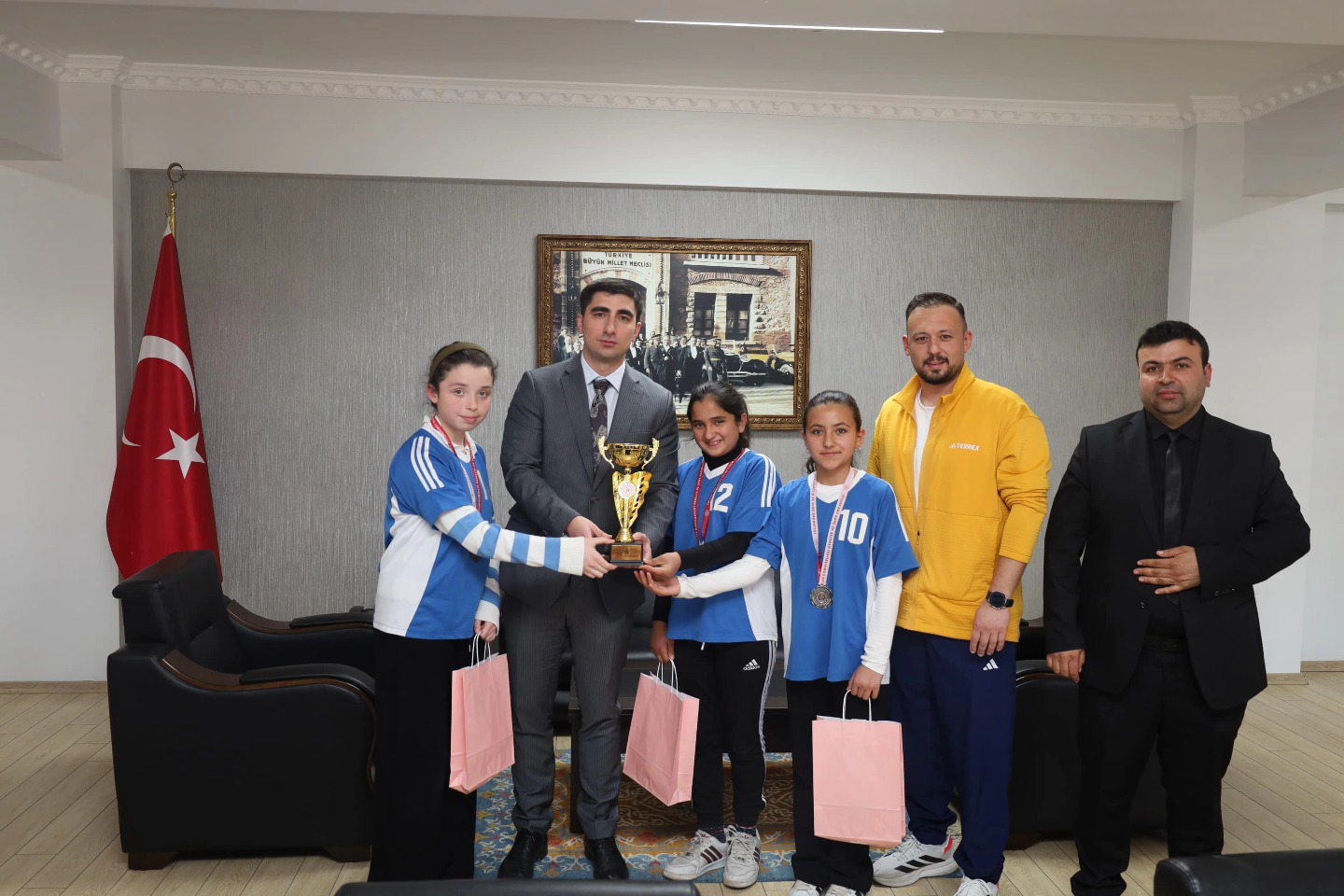 Başarılı sporcular İlçe Kaymakamımız Serdar CANTEPE ve İlçe Milli Eğitim Müdürü Ufuk TAŞBAŞ'ı makamında ziyaret etti.